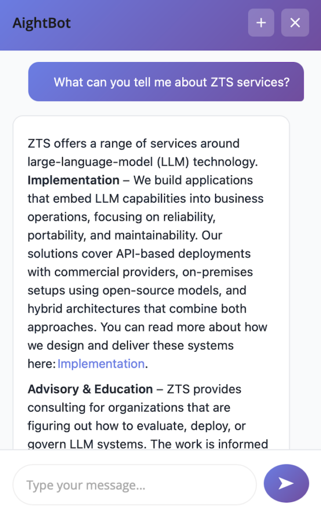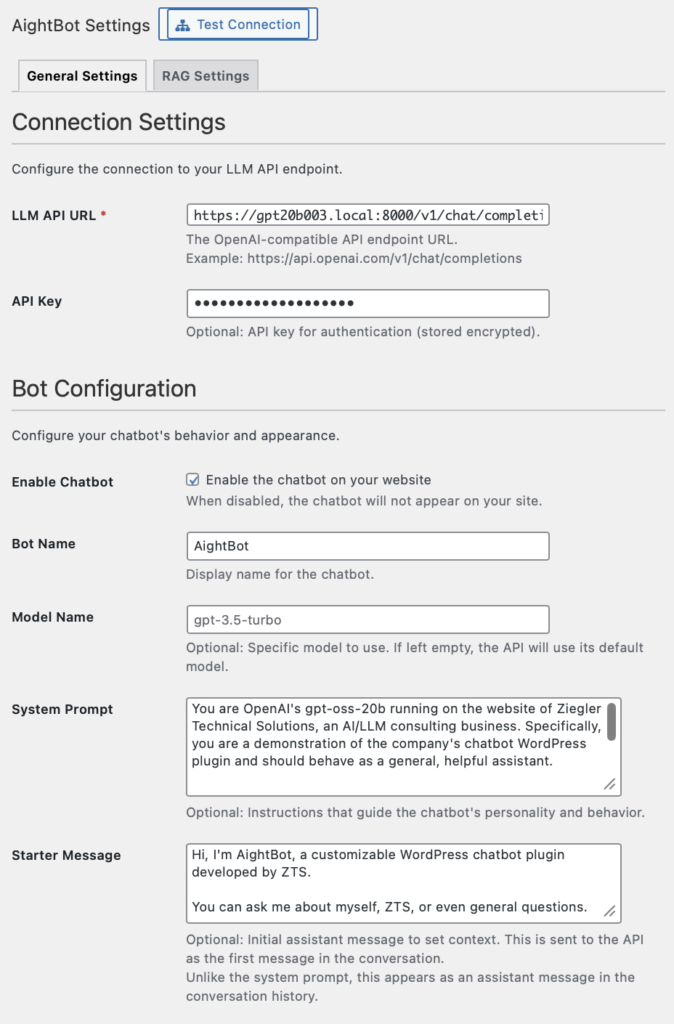 See our AightBot WordPress LLM Chatbot Plugin on GitHub.